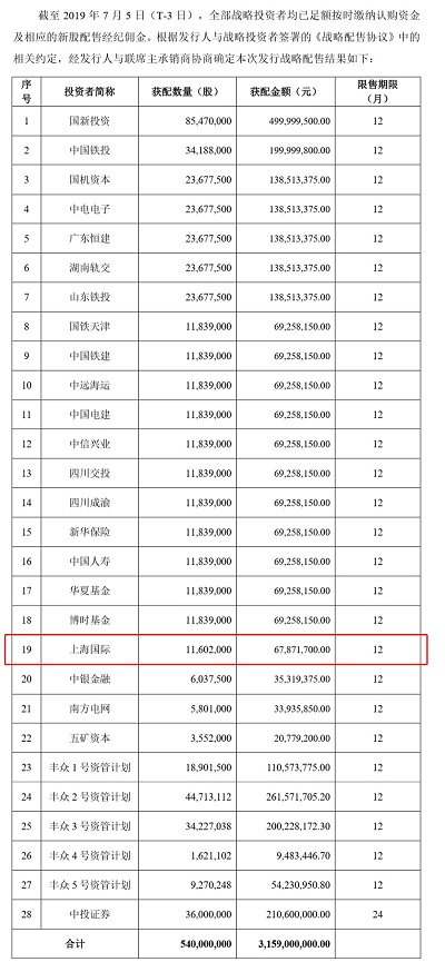 7月8日晚,中國通(tōng)号(688009.SH)等首批9家(jiā)科創闆企業發布公告,确定了發行(xíng)價格及戰略配售情況。除公募基金、險資機構、證券公司子公司、上(shàng)市公司管理(lǐ)層持股平台外,徽仁芃盈資産管理(上海)有限公司成功取得(de)戰略配售的獲配資格,戰略獲配股數(shù)11,602,000股,獲配金額約6800萬元。這是上(shàng)海市屬國資參與并進入科創闆企業戰略配售的第一單。