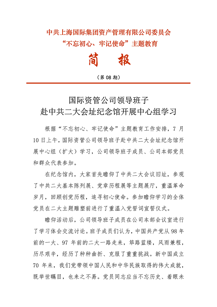 [不忘初心、牢記使命]08 國際資管公司領導班子赴中共二大(dà)會(huì)址紀念館開(kāi)展中心組學習