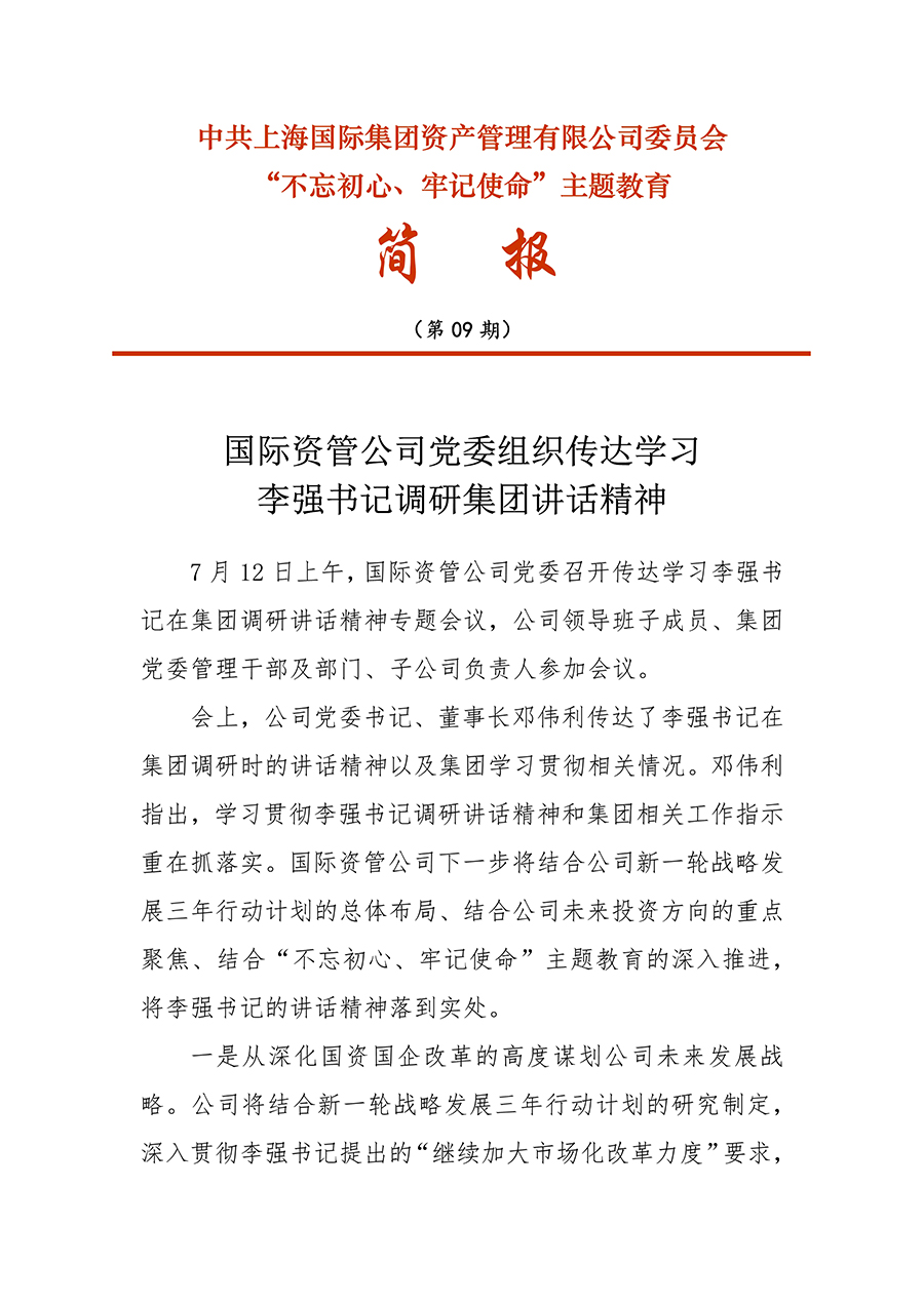 [不忘初心、牢記使命]09 國際資管公司黨委組織傳達學習李強書(shū)記調研集團講話(huà)精神