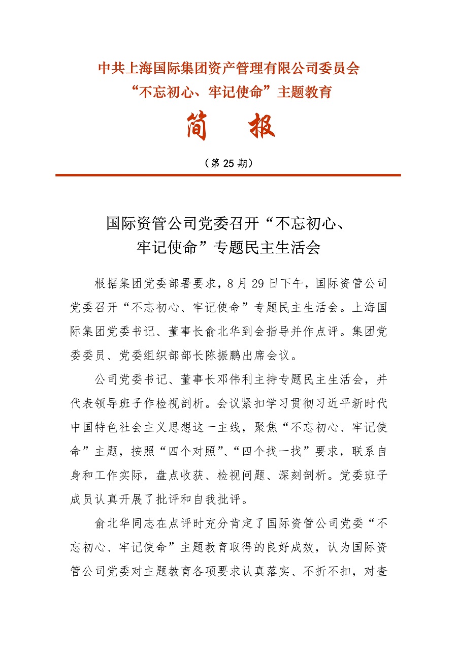 [不忘初心、牢記使命]25 國際資管公司黨委召開(kāi)“不忘初心、牢記使命”專題民主生(shēng)活會(huì)