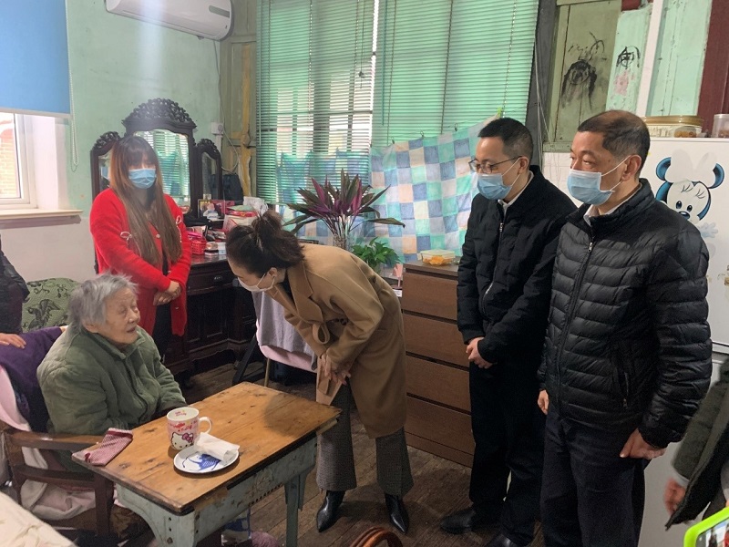 馬海燕主席一行(xíng)還(hái)先後慰問了百歲老人(rén)蔣淑娟和(hé)88歲的獨居老人(rén)孫新娣和(hé)身患重病的獨居老人(rén)張銘華。所到之處,與老人(rén)們親切交談,了解他們的身體(tǐ)和(hé)生(shēng)活狀況,叮囑他們照顧好身體(tǐ),安享晚年生(shēng)活,溫暖幸福過新春。從老舊(jiù)的樓梯拾級而上(shàng),把濃濃的情誼帶進方寸的居所,也拉近了集團大(dà)廈與社區(qū)居民之間(jiān)的距離。