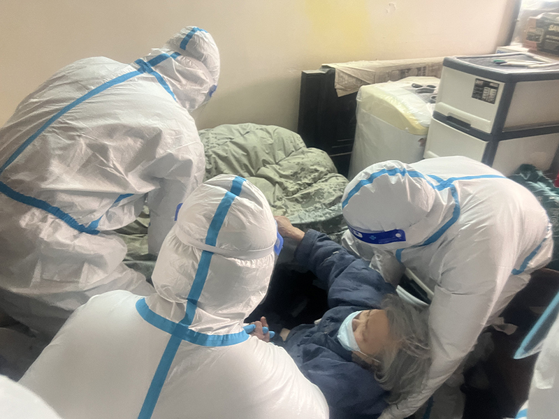 疫情防控一線情況複雜,各種突發情況随時(shí)可(kě)能出現。在陸文祺剛進組第三天的清晨,陸文祺突然得(de)知,在一戶核酸陽性待轉運的居民家(jiā)中,有(yǒu)位密接老人(rén)摔倒在床邊無法起身。他聽(tīng)後二話(huà)沒說就趕緊穿上(shàng)“大(dà)白”防護服、戴上(shàng)兩層口罩,緊随居民區(qū)黨總支書(shū)記上(shàng)門(mén)支援。到了現場(chǎng)後,陸文祺不禁心頭一緊:老人(rén)的右腿正卡在床底,又因為(wèi)情緒緊張,雙手緊緊抓住身邊的椅子不肯放手,經多(duō)人(rén)擡扶還(hái)是無法起身。情急之下,陸文祺也顧不上(shàng)近距離接觸可(kě)能感染的風險,主動從頭部一側架住老人(rén)雙臂,并耐心安撫老人(rén)情緒,引導其放松身體(tǐ),大(dà)家(jiā)終于合力将老人(rén)擡上(shàng)床。“說實話(huà),事後确實有(yǒu)些(xiē)擔心,畢竟是在陽性病例家(jiā)裏,幫助的又是密接老人(rén)。但(dàn)是當時(shí)情況緊急,沒有(yǒu)時(shí)間(jiān)去考慮那(nà)麽多(duō)。”陸文祺如是說。