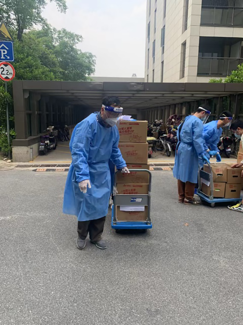 近期,江灣鎮街(jiē)道(dào)下屬的兩個(gè)居委全體(tǐ)工作(zuò)人(rén)員确診陽性後被送往方艙醫(yī)院,無法及時(shí)派出人(rén)手到街(jiē)道(dào)領取抗疫物資。而且由于物資倉庫涉陽,部分物資在尚未完成消殺前無法使用,需要街(jiē)道(dào)對物資進行(xíng)緊急調配。為(wèi)此,陳斌與同事們對這兩個(gè)居委所轄小(xiǎo)區(qū)開(kāi)展重點幫扶,他們緊急調配運力,及時(shí)将物資運送發放到小(xiǎo)區(qū),為(wèi)居民們解決了燃眉之急。